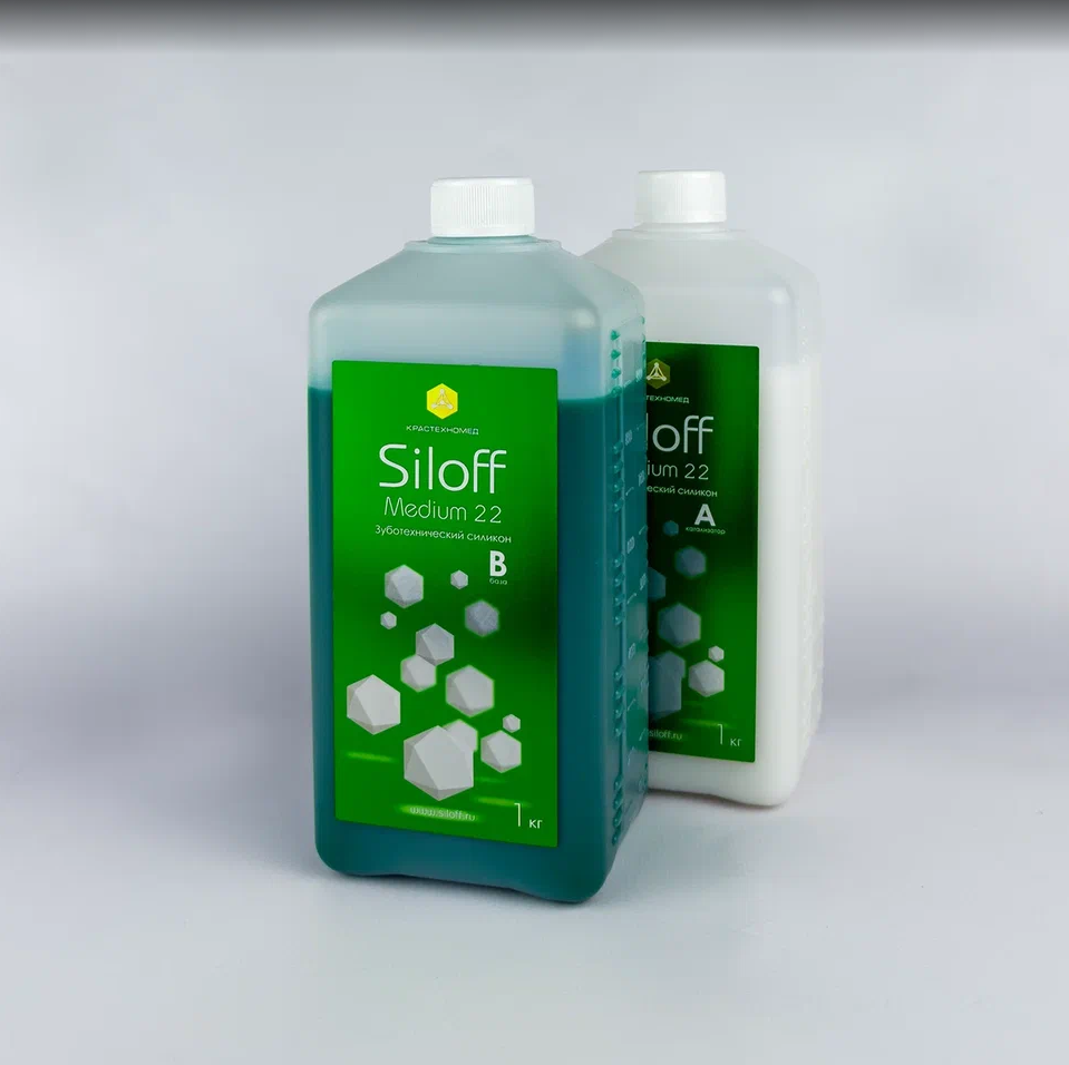 Siloff Medium 22 — особенно быстрый, высококачественный двухкомпонентный А-силикон с чрезвычайно высокой точностью воспроизведения при дублировании.