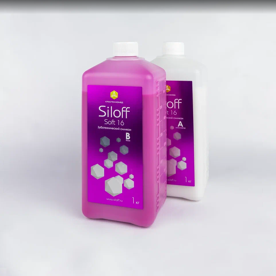 Siloff Soft 16 — особенно быстрый, высококачественный двухкомпонентный А-силикон с чрезвычайно высокой точностью воспроизведения при дублировании.