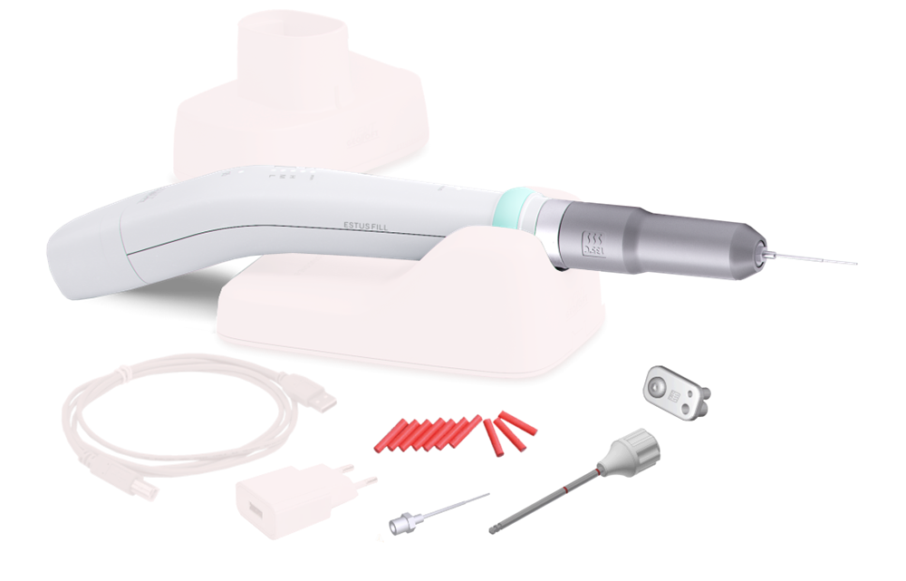 • Высококачественные расходные материалы: гуттаперчевые столбики и два типоразмера инжекторных игл (№23G и №25G)