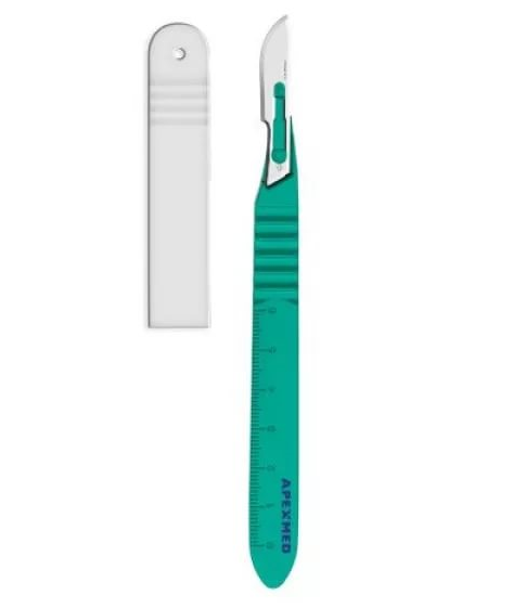 Скальпель одноразовый стерильный № 10 из нержавеющей стали с пластмассовой ручкой Apexmed для рассечения мягких тканей и сосудов при различных хирургических вмешательствах