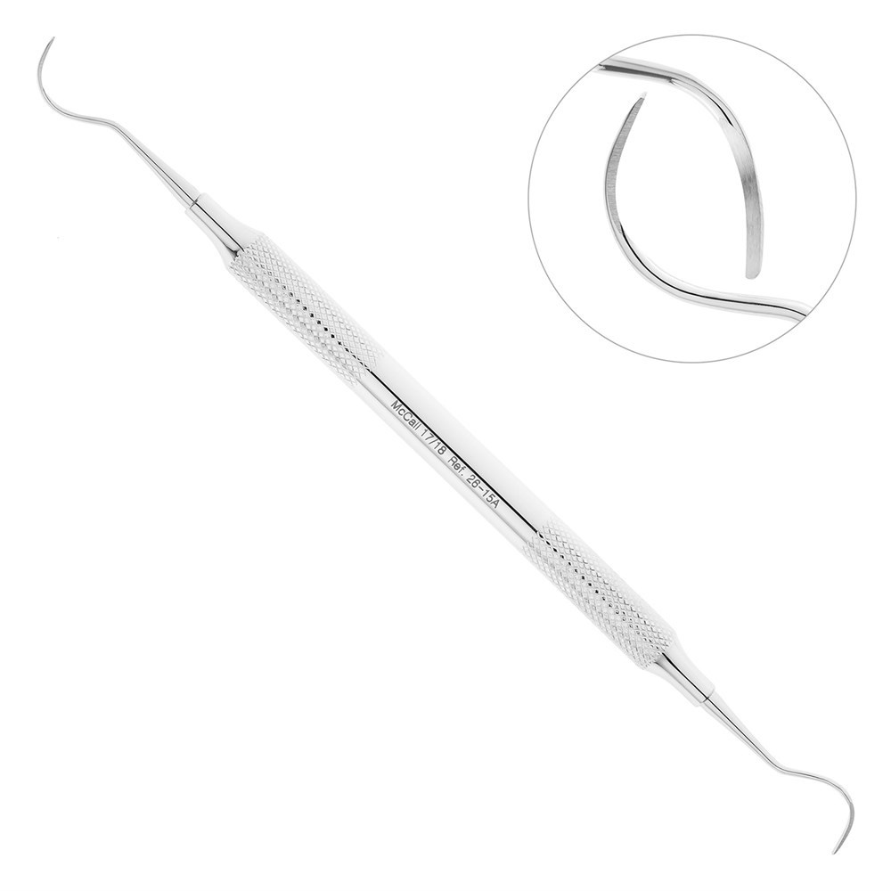 Компанией HLW Dental Instruments изготовлен пародонтологический скейлер McCall формы №17/18. Стоматологический инструмент предназначен для удаления зубных отложений в наддесневой области, а также для сглаживания поверхности корней зубов.