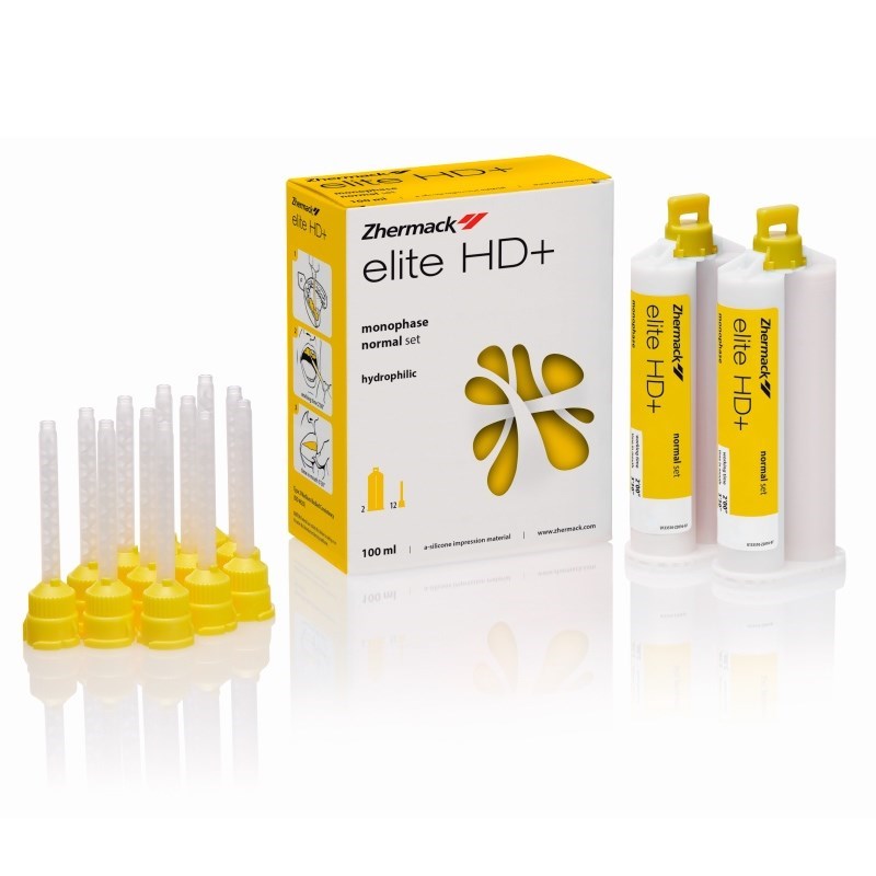Elite HD+ Monophase Medium Body гидросовместимый А-Силикон средней вязкости. Данный оттискный материал рекомендуется для одноэтапной техники, как материал с одинаковой вязкостью, наносимый как на препарируемую область, так и в индивидуальную оттискную ложку. Кроме этого, рекомендуется для одноэтапной техники (одновременной), в сочетании с Elite HD+ (Light Body, Extra Light Body или Regular Body).