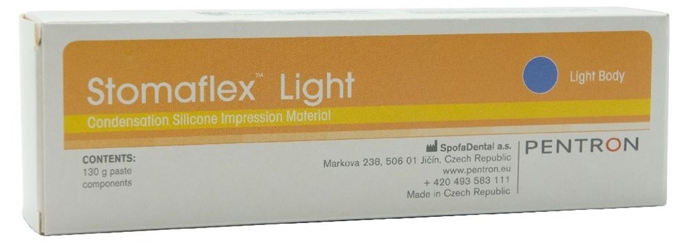 Стомафлекс Лайт - Stomaflex® Light. С-силиконовый оттискный материал низкой вязкости. Используется в качестве коррегирующего слоя для оттисков по двухэтапной методике, как материал низкой вязкости для оттисков по одноэтапной методике (сэндвич-техника), коррегирующий материал для снятия функциональных оттисков в индивидуальной оттискной ложке, материал для припасовки. Упаковка 130 г пасты в тюбике