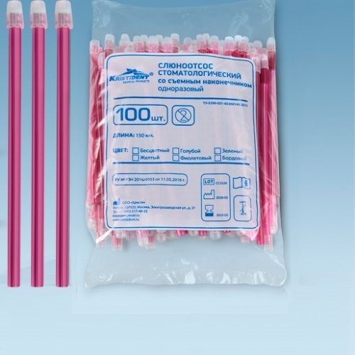 Описание: Слюноотсосы Бордовые 100шт. / КристидентСлюноотсос стоматологический, одноразовый предназначен для всасывания из ротовой полости пациента аэрозолей и находящиеся в жидкости во взвешенном состоянии твердые частицы, при проведении стоматологических процедур, с целью удаления ограниченного объема жидкости (слюны) и взвеси изо рта пациента.