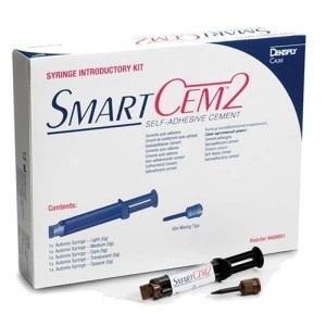 Цемент SmartCem™2 является двухкомпонентным самоадгезивным цементом двойного отверждения, содержащим фтор. SmartCem™2 сочетает в себе эстетику благодаря различным оттенкам и самопротравливающий адгезив, которые позволяют применять его для постоянной цементировки металлических, металлокерамических, пластмассовых/композитных, керамических и фарфоровыхинлеев, онлеев, коронок, мостовидных протезов и эндодонтических штифтов без нанесения отдельных систем для бондинга эмали и дентина. Отвержденный цемент SmartCem™2 фактически гидрофобен, значительно уменьшает водопоглощение после процесса отверждения, а также минимизирует растворение и гидроскопическое расширение.