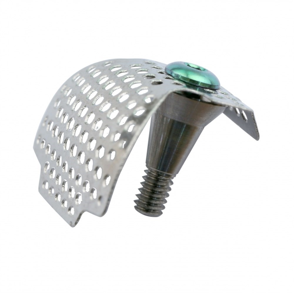 Спейсер это двухкомпонентный специализированный абатмент, создающий опору и обеспечивающий жесткую фиксацию титановых сеток над уровнем платформы имплантата при операциях направленной костной регенерации по высоте и ширине.
