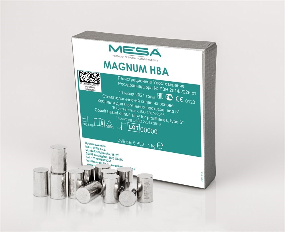 Cплав Magnum HBA для для бюгельных протезов – это один из самых надёжных кобальт-хромовых сплавов на рынке. Его преимуществами перед другими продуктами являются отличные механические свойства, а также низкая степень образования слоя оксида.
