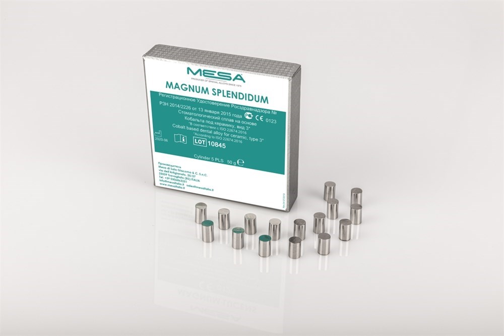 Сплав Magnum Splendidum для керамики (коронок и мостов) – кобальт-хромовый сплав без содержания бериллия. Характеризуется превосходными механическими свойствами и низкой степенью образования слоя оксида.