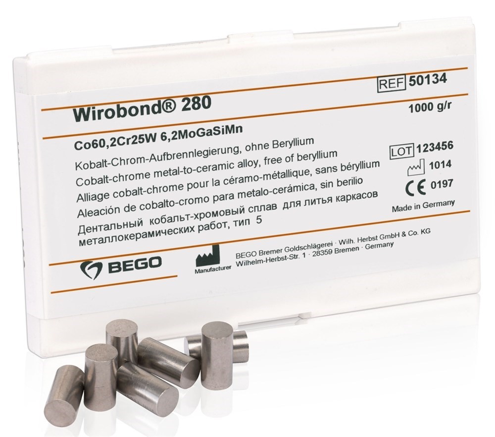 Bego Wirobond 280 Co-Cr кобальт-хромовый сплав премиум класса для изготовления каркасов коронок и мостов под облицовку керамикой или пластмассы