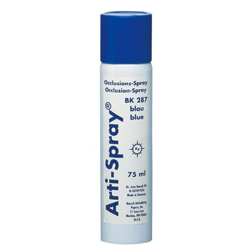 Arti-Spray® - это универсальный цветной индикатор для проверки окклюзионных контактов и точности подгонки коронок и мостовидных протезов. Arti-Spray® легко дозируется и образует тонкий слой краски, легко удаляемый водой.
