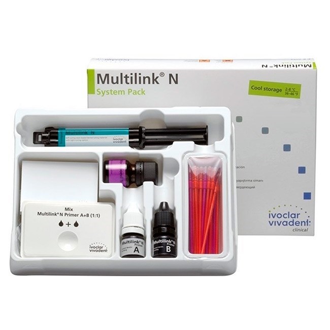 Multilink N System Pack Transparent прозрачный универсальный самотвердеющий фиксирующий композит, в шприцах с автоматическим замешиванием, характеризуется широким спектром применений и отличными свойствами.