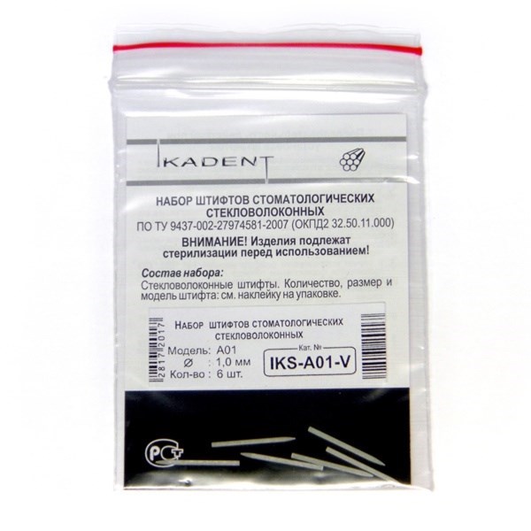 Стекловолоконные эндоканальные штифты цилиндрические A01, d= 1.0 мм, набор 6 шт
