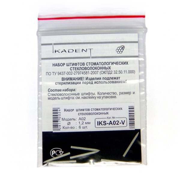 Стекловолоконные эндоканальные штифты цилиндрические A02, d= 1.2 мм, набор 6 шт