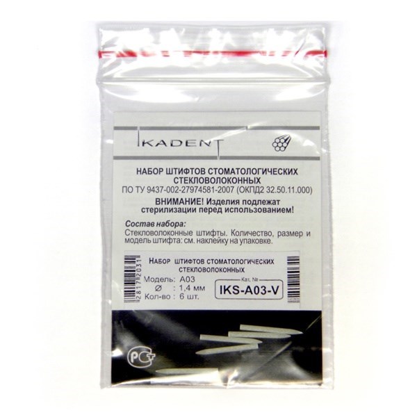 Стекловолоконные эндоканальные штифты цилиндрические A03, d=1.4 мм, набор 6 шт