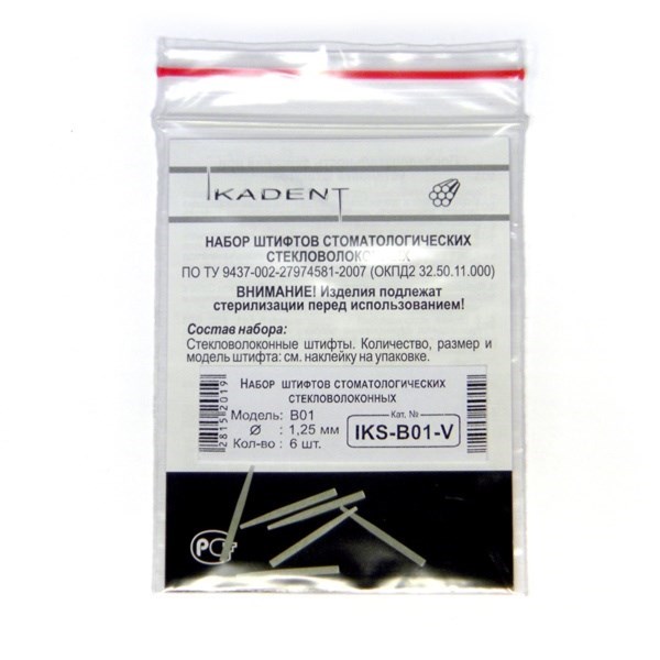 Эндоканальные штифты IKADENT применяются в качестве армирующего (усиливающего) элемента для эстетической реставрации частично разрушенной коронки зуба при эндодонтическом лечении. Эти штифты используются во всех группах зубов при сохранении минимум двух стенок естественной коронки. В силу отсутствия плеча (опорного элемента) штифты не предназначены для композитных реставраций при значительном повреждении или полной утрате естественной коронки, а также крепления на них металлокерамических коронок, мостов и прочих объемных конструкций.