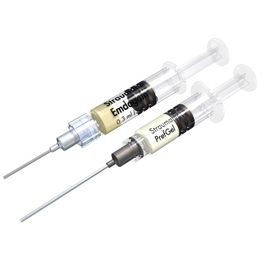 Straumann® (Штрауманн) Emdogain® (Эмдогейн) — это уникальный гель, содержащий протеины эмалевой матрицы животного происхождения (свиные), способствующий регенерации как твёрдой, так и мягкой ткани.