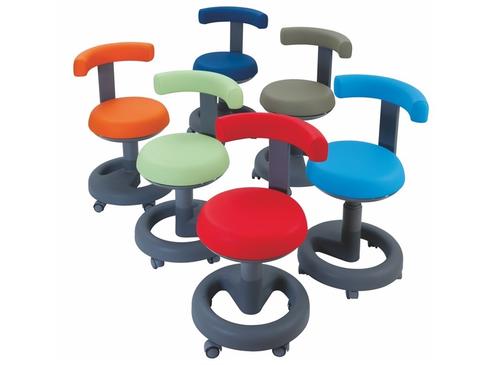 Стул стоматологический Star (цвет 003) - на круглом металлическом основании со специальным пластиковым покрытием, одновременно выполняющим функцию опоры для ног, имеет 5 роликовых опор. Регулировка по высоте осуществляется с помощью газового амортизатора. Минимальная высота от уровня пола до верхней части сидения 50 см, максимальная 65 см. Сидение стула круглой формы вращается на 360о. Спинка стула полукруглой формы с абдоминальным упором. Вращается на 360о относительно сидения, имеет возможность крепления в трех фиксированных положениях. Гарантия 1 год.