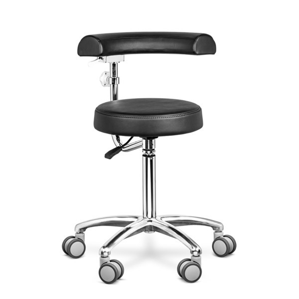 Mercury Lux — эргономичный стул с абдоминальным упором для использования в стоматологии. Абдоминальный упор не только регулируется по высоте, вращается вокруг основания сидения, но и вращается на 360 градусов вокруг своей оси с возможностью фиксации в любом удобном для Вас положении, вращение и перемещение в разные положения спинки. При проведении операции ассистент может настроить его так, чтобы они с врачом могли опираться вдвоем на абдоминал. Это удобно во время совместной длительной практики, когда очень важно зафиксировать руку для точной работы.