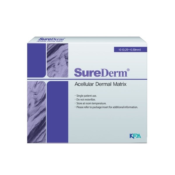 Бесклеточный дермальный матрикс (мембрана) SureDerm сохраняет трехмерную структуру слоя дермы, которая помогает безопасно и эффективно лечить и восстанавливать костную ткань пациента по мере регенерации клеток и кровеносных сосудов. Выпускается в форме пластины.