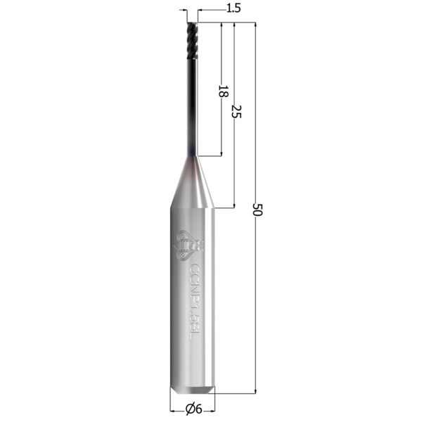 Сверло CC CoCrTi/PMMA, прямое, длинное, 1,5 мм
