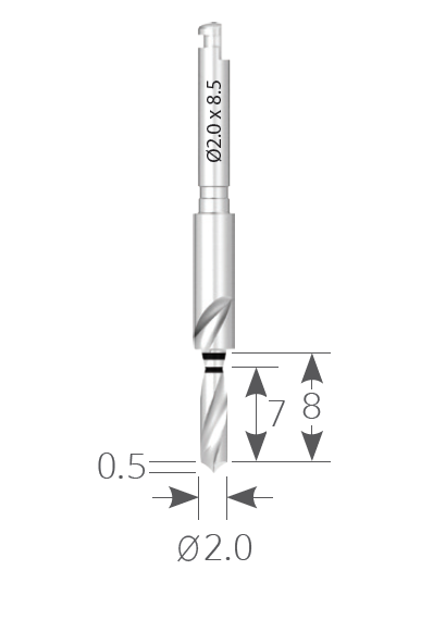 Сверло первоначальное диаметр 2.0, длина рабочей части 7-8 мм.