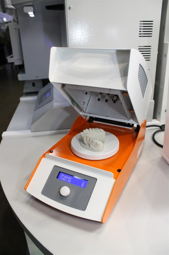 Аппарат может использоваться также при отверждении покрывных лаков для съемных протезов и временных коронок. Такие лаки запечатывают поры на акриле, придавая протезу гладкость и блеск. Фотоинициатор отверждения большинства покрывных лаков находится на длине волны около 400 нм, поэтому в ФОТОПРЕСС 2.0 АРТ добавлены светодиоды с соответствующим спектром. Отверждение покрывного лака занимает всего 3 мин., тогда как в большинстве импортных аналогов - 15 мин.