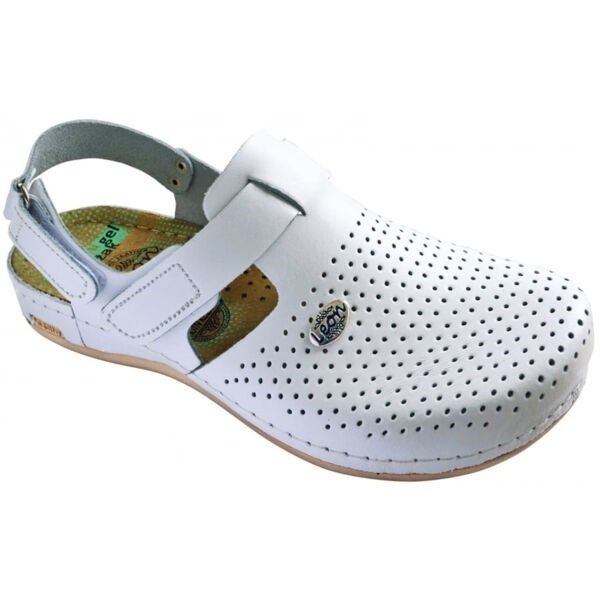 Женские тапочки-сабо Леон 951 — стильная и модная модель обуви из натуральной кожи. Закрытый носок и классический дизайн делают модель универсальной обувью для летних прогулок или ежедневного ношения на работе. ЛЕОН сабо 951 имеют хорошую перфорацию, создающую комфорт и предотвращают потоотделение. Элегантный ремешок, застегивающийся сбоку, дополнительно фиксирует обувь на ноге, позволяя осуществлять корректировку ширины модели.
