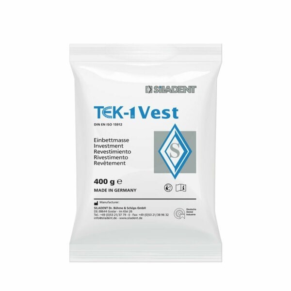 Паковочная масса ТЕК-1 VEST –– сверхтекучий, фосфатный, высокоточный материал, не содержащий графита и разработанный специально для метода ТЕК-1, а также для всей технологии литья моделей. Масса ТЕК-1 VEST подходит для техники скоростного литья и позволяет добиться отличных результатов в сочетании с TEK-1 LEG.