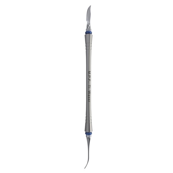Инструмент TI Waxer Carving Instrument изготовлен из титана, имеет синюю маркировку и двустороннюю рабочую часть: с одной стороны "большой лекрон", с другой - изогнутая лопатка. Применяется для работы с воском.