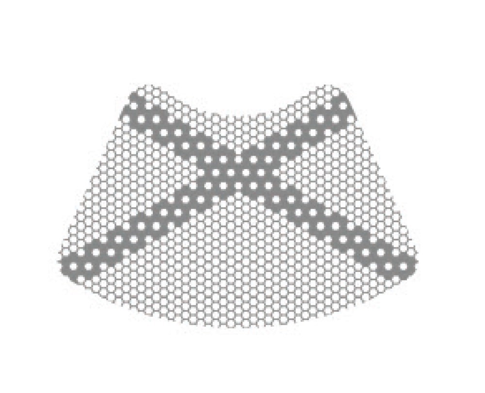 - оптимальный Ø и шестигранная форма ячеек обеспечивают быструю регенерацию аугментата за счет интенсивной микроциркуляции крови;