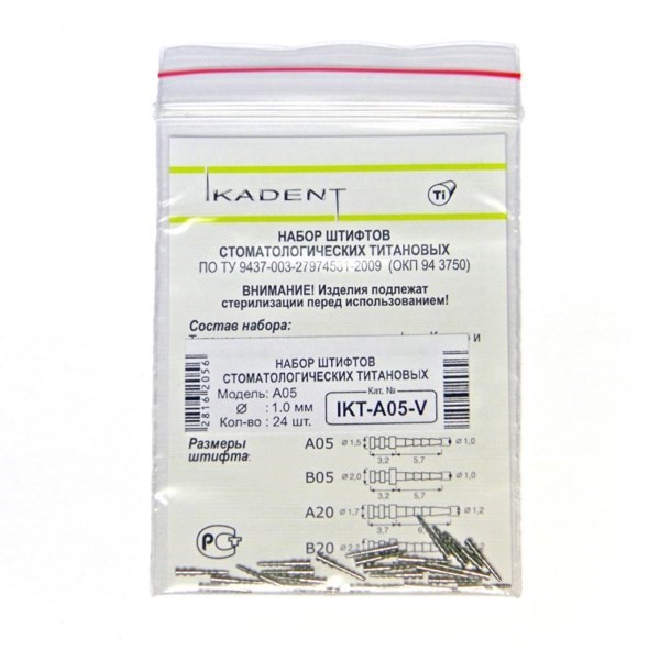 Титановые эндоканальные штифты A05, d1=1.5 мм, d2=1.0 мм, набор 24 шт