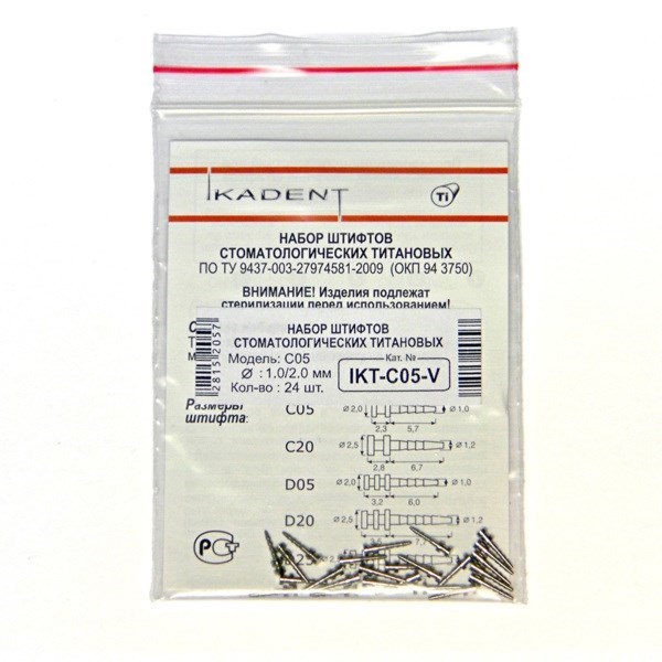 Титановые пассивные анкерные штифты C05, d1=2.0 мм, d2=1.0 мм, набор 24 шт