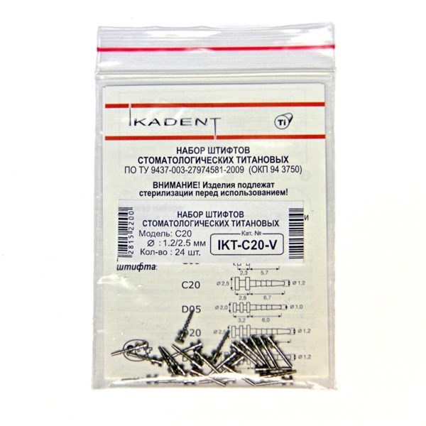 Титановые пассивные анкерные штифты C20, d1=2.5 мм, d2=1.2 мм, набор 24 шт