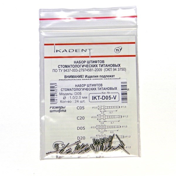 Титановые пассивные анкерные штифты D05, d1=2.0 мм, d2=0.9 мм, набор 24 шт