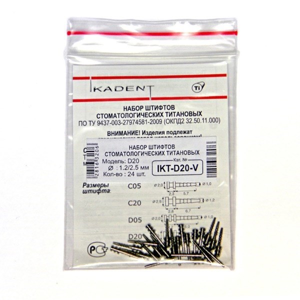 Титановые пассивные анкерные штифты D20, d1=2.5 мм, d2=1.2 мм, набор 24 шт