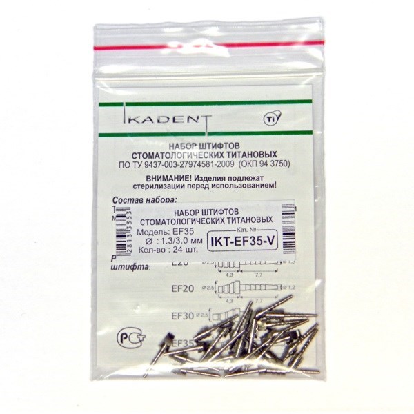 Титановые пассивные анкерные штифты под металлокерамику EF35, d1=3.0 мм, d2=1.3 мм, набор 24 шт