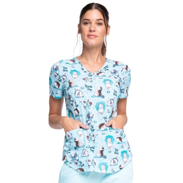 Топ женский медицинский от производителя Cherokee CK637 имеет современный крой с v-образным вырезом. Модель дополняет два передних прорезных кармана.