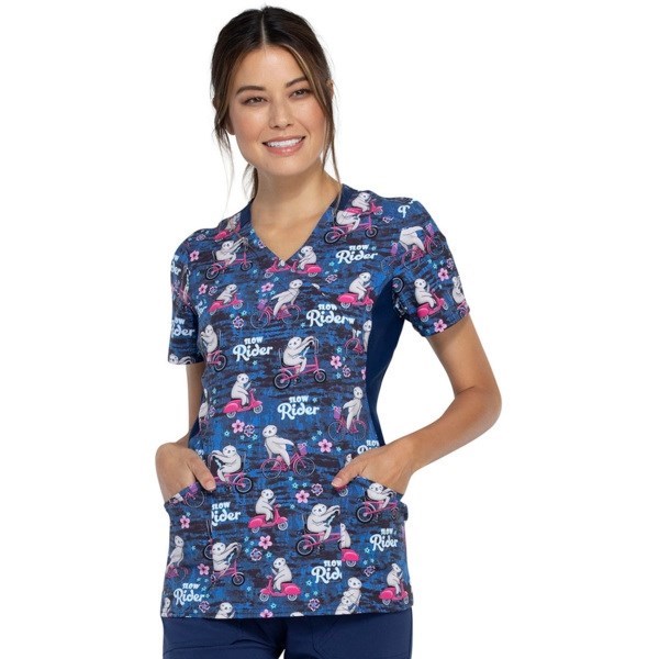 Топ женский медицинский от производителя Cherokee CK642 с имитацией запаха, имеет современный крой, передние кокетки на плечах, два передних накладных кармана и боковые разрезы. Передняя и задняя боковые панели выполнены из мягкого эластичного трикотажа для дополнительной подвижности и идеальной посадки.