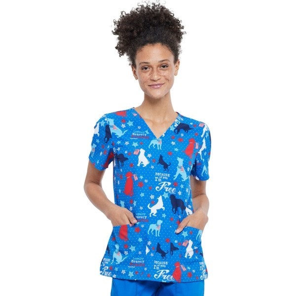 Топ женский медицинский от производителя Cherokee CK671 имеет современный крой с v-образным вырезом. Модель дополнена задним швом на кокетке, двумя накладными карманами с прорезью для ручек с левой стороны.