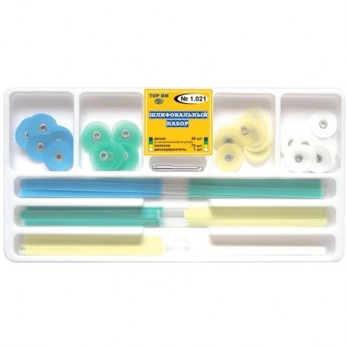 Описание: ТОР-1.021 Набор шлифовальный с дисками (металлическая втулка) и полоскамиДиски шлифовальные выпускаются на лавсановой основе. Удобны для обработки пломб из композитных материалов на фронтальных зубах, а также на проксимальных, вестибулярных, язычных и небных поверхностях жевательной группы зубов.