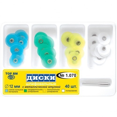 Описание: ТОР-1.070 Диски d12мм набор (4*10+дискодер.)Диски шлифовальные выпускаются на лавсановой основе. Удобны для обработки пломб из композитных материалов на фронтальных зубах, а также на проксимальных, вестибулярных, язычных и небных поверхностях жевательной группы зубов.