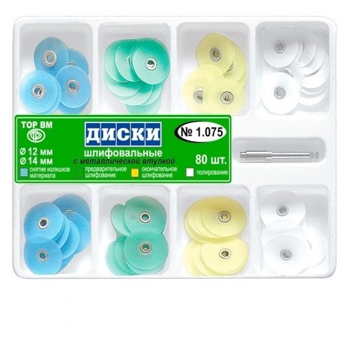 Описание: ТОР-1.075 диски шлифовальные универсальный комплект ассорти 12, 14мм, 80шт.Диски шлифовальные выпускаются на лавсановой основе. Удобны для обработки пломб из композитных материалов на фронтальных зубах, а также на проксимальных, вестибулярных, язычных и небных поверхностях жевательной группы зубов.