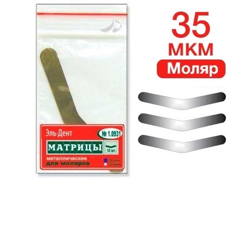 Описание: ТОР-1.0931 35 мкм Матрицы металлические для моляров (12шт.)/бумерангМатрицы металлические для моляров форма 1 (без выступов).