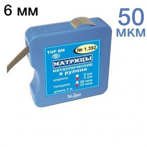 Матрицы металлические № 1.392 в рулоне (квадратная упаковка) ширина 6 мм, длина 3 м.