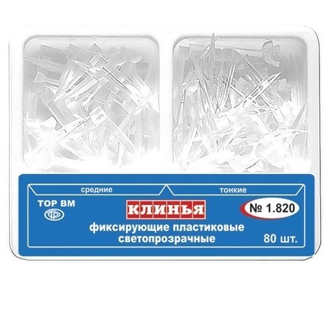 Описание: ТОР-1.820 Клинья светопроводящие ассорти (80шт.) тонкие-55шт., средние-25шт.Клинья N1.820 фиксирующие пластиковые светопрозрачные. 80 шт.