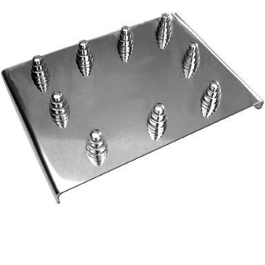 Девятиместная подставка изготовлена из специальной стали, которая легко дезинфицируется и стерилизуется. Каждый из шипов рассчитан на 3 места разных размеров, куда надежно закрепится любой кламп.