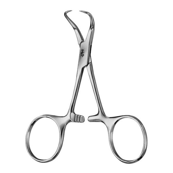 Цапка по BACKHAUS, длина 90 мм, BF431R, B.Braun (Aesculap, Германия) предназначена для фиксации операционного белья вокруг раны, иногда вместе с салфетками для большей прочности, ей захватывают кожу после анестезии. Применяются также для удерживания операционного белья на перевязочном и операционном столиках. Инструмент выполнен из нержавеющей стали, рабочая область изогнутая внутрь с заостренными концами, рукоятка с кольцевыми фиксаторами между которыми находится замок кремальера, обеспечивающий более прочную фиксацию.