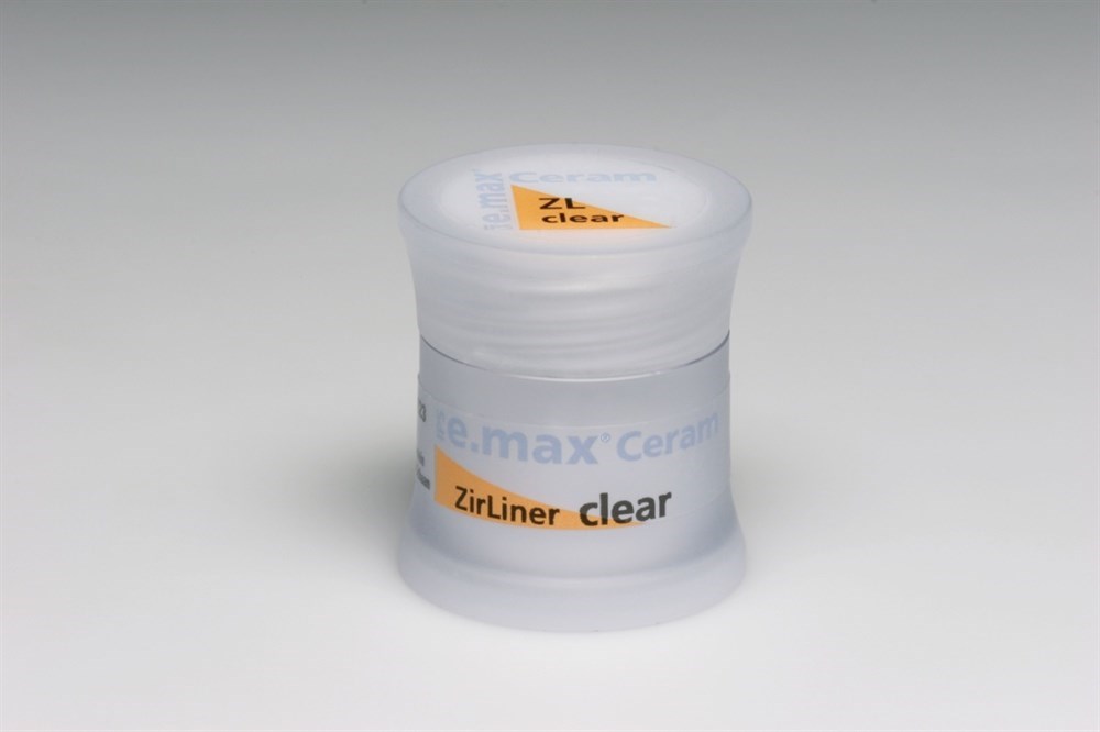 IPS e.max Ceram ZirLiner 5 г (прозрачный) используется для окрашенных каркасов из оксида циркония, ультрасветлых цветов Bleach, а также для смешивания с интенсивным циркониевым подслоем IPS e.max Ceram Intensiv ZirLiner.