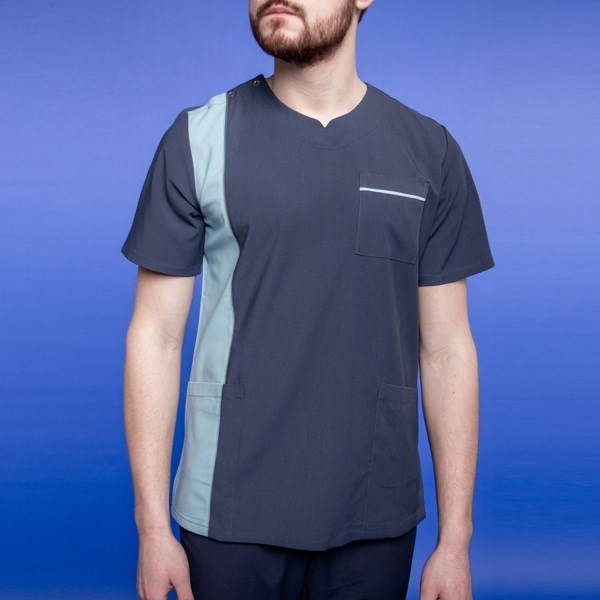 Мужская медицинская туника серии 260 Wisconsin от бренда PULSE имеет прямой крой, короткий рукав, разрезы по бокам и округлый вырез. Модель дополнена тремя карманами: два накладных и один нагрудный, а также яркой контрастной полоской на передней полочке. Для удобства надевания на правом плечевом шве горловины имеется застежка на металлических кнопках. Данное изделие доступно в разных цветовых вариантах.