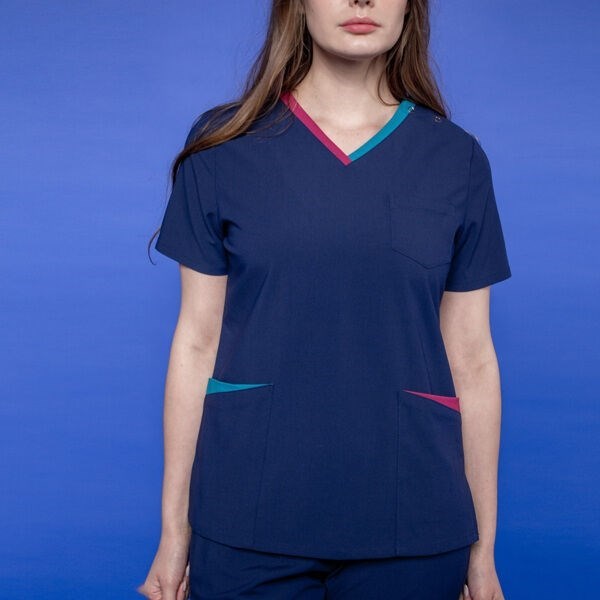 Женская медицинская туника серии 266 Arizona от бренда PULSE имеет прямой крой, короткий рукав и V-образный вырез. Модель дополнена тремя карманами: два накладных и один нагрудный, а также яркой контрастной окантовкой на горловине и карманах. Для удобства надевания на левом плечевом шве горловины имеется застежка на металлических кнопках. Данное изделие доступно в разных цветовых вариантах.